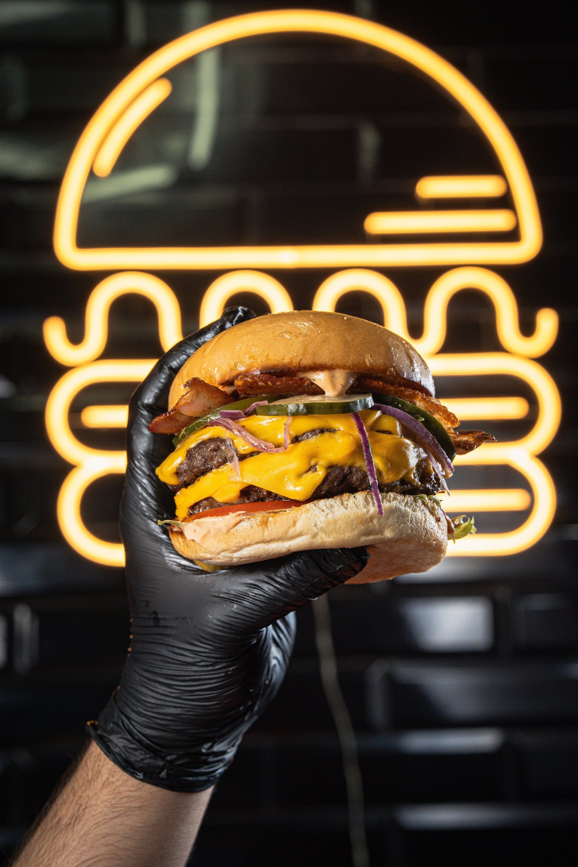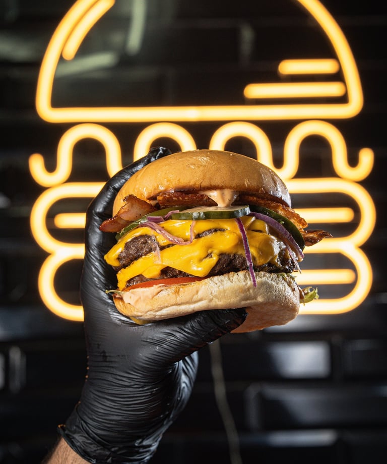Doble blend 100g, Doble cheddar, Bacón crispy y Cebolla brunoise. El origen de la leyenda Bronson.