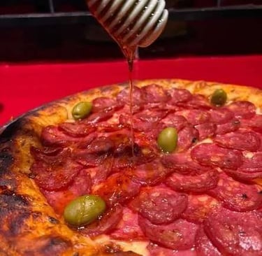 Producto estrella. Muzzarella premium, Pepperoni casero, Salsa de miel picante artesanal. La sensación del momento.
