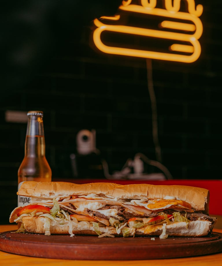Jugosa carne de ternera cocinada a la perfección, acompañada de pan fresco e ingredientes que realzan su sabor. Una opción irresistible para los amantes de lo auténtico.